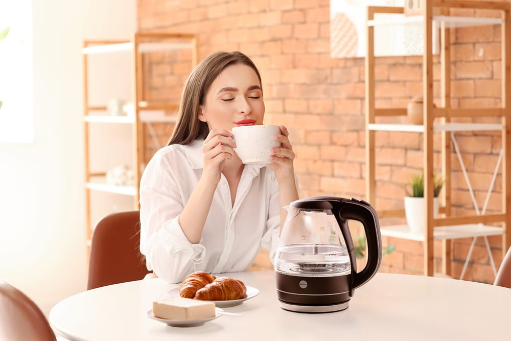 Dzbanek rozpoczyna pracę po włączeniu przycisku (4) w pozycję „1”.
