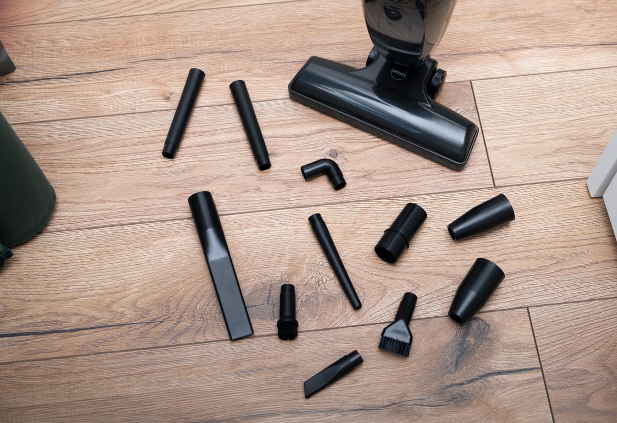 - Akcesoria 11x dysze ssące; szczotka podłogowa; rurka z uchwytem odkurzacza pionowego
