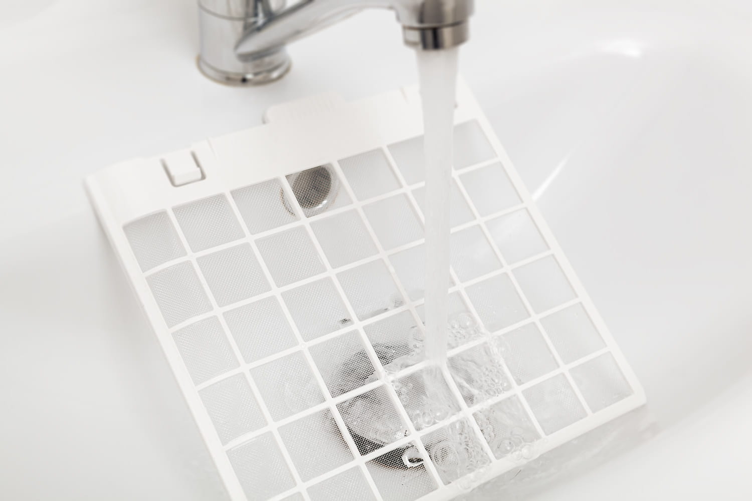 Filtr należy wyciągnąć z obudowy (rys. 6) i przepłukać pod bieżącą wodą.